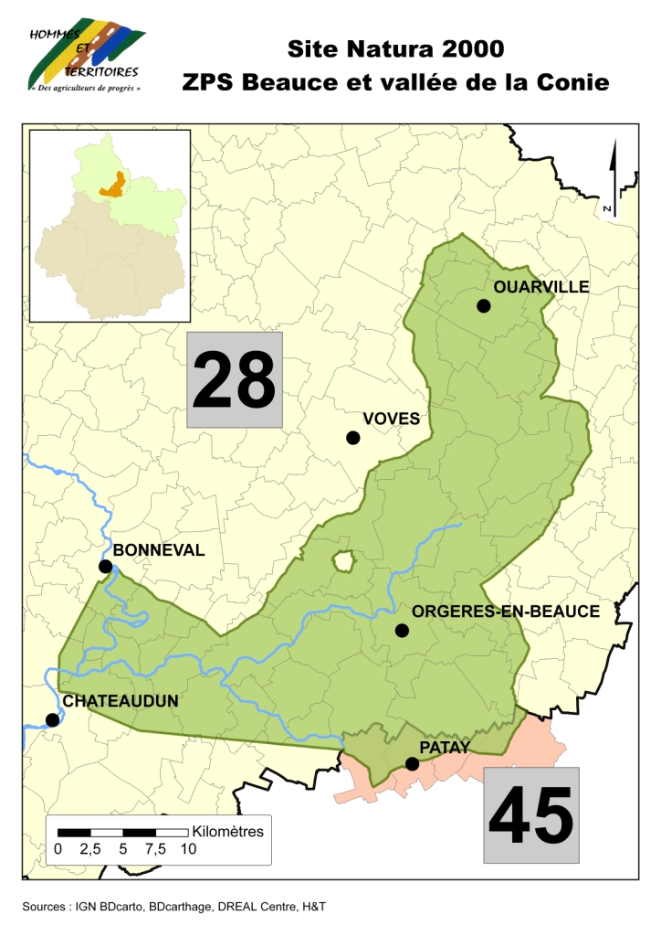 Une surface, précisément de 71 753 ha, qui fait de la ZPS "Beauce et Vallée de la Conie" le plus grand site Natura 2000 du département, et l'un des plus grands au niveau régional. 62 communes sont concernées, dont 4 sur le département du Loiret, au Sud du site.