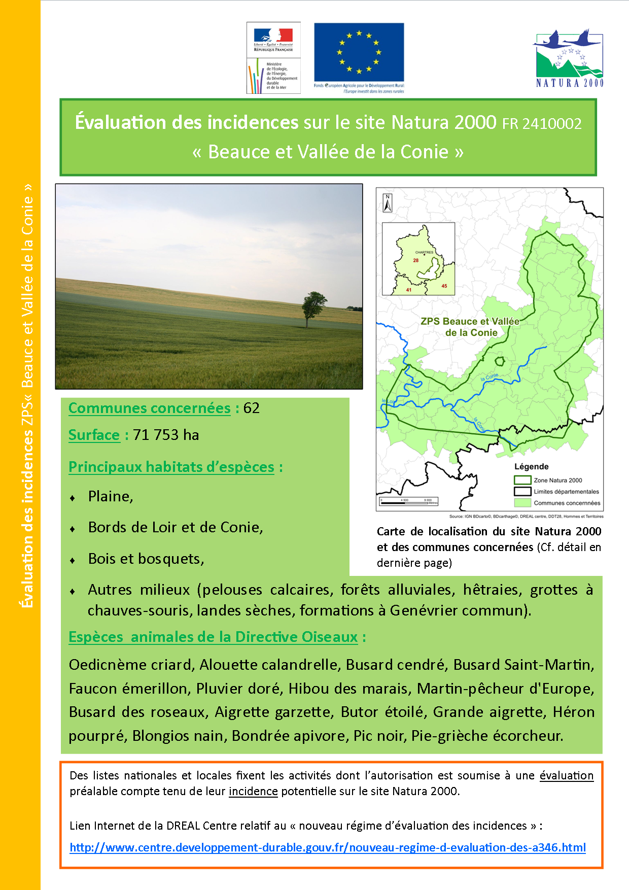 Fiche de vulgarisation évaluation des incidences Fiche de vulgarisation des actions soumises à l'évaluation des incidences Beauce et Vallée de la Conie: Cliquez sur l'image pour télécharger
