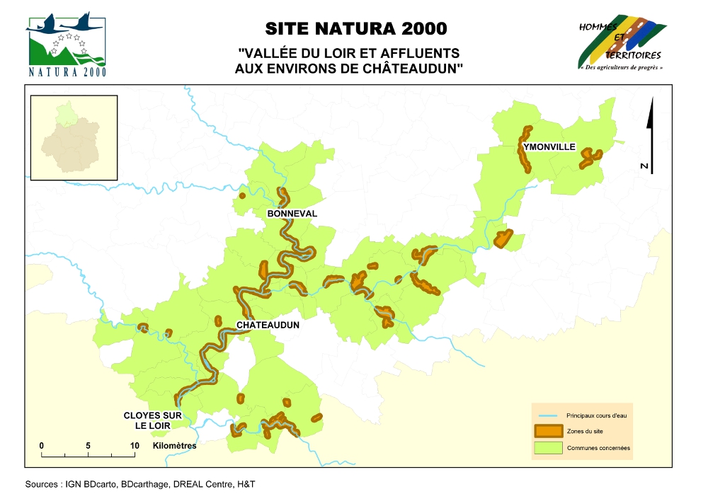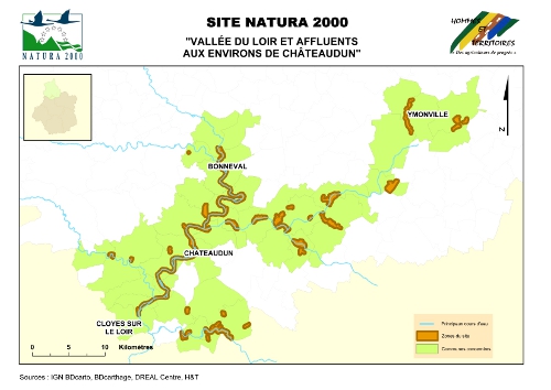 Le site est en fait un ensemble constitué de 36 zones bien délimitées, de taille hétérogène, qui abritent des habitats ou des espèces d'intérêt communautaire. Sa superficie totale est d'environ 1310 hectares. Il comprend le Loir de Bonneval à Châteaudun, ainsi que des zones situées à proximité des vallées du Loir et de ses affluents, dont la Conie. 38 communes sont concernées par le périmètre.